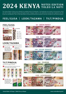 Counterfeits are a threat to the circulation of genuine Kenyan currency. Security features in currency notes act as a deterrent and safeguard to minimize the risk of counterfeiting. We encourage the public to be aware of the available security features incorporated in genuine currency notes and coins, and to be able to distinguish between genuine and fake currency. Each genuine banknote incorporates a number of security features that make the counterfeiting of the currency notes extremely difficult. The following are public security features to be checked on the banknotes.
