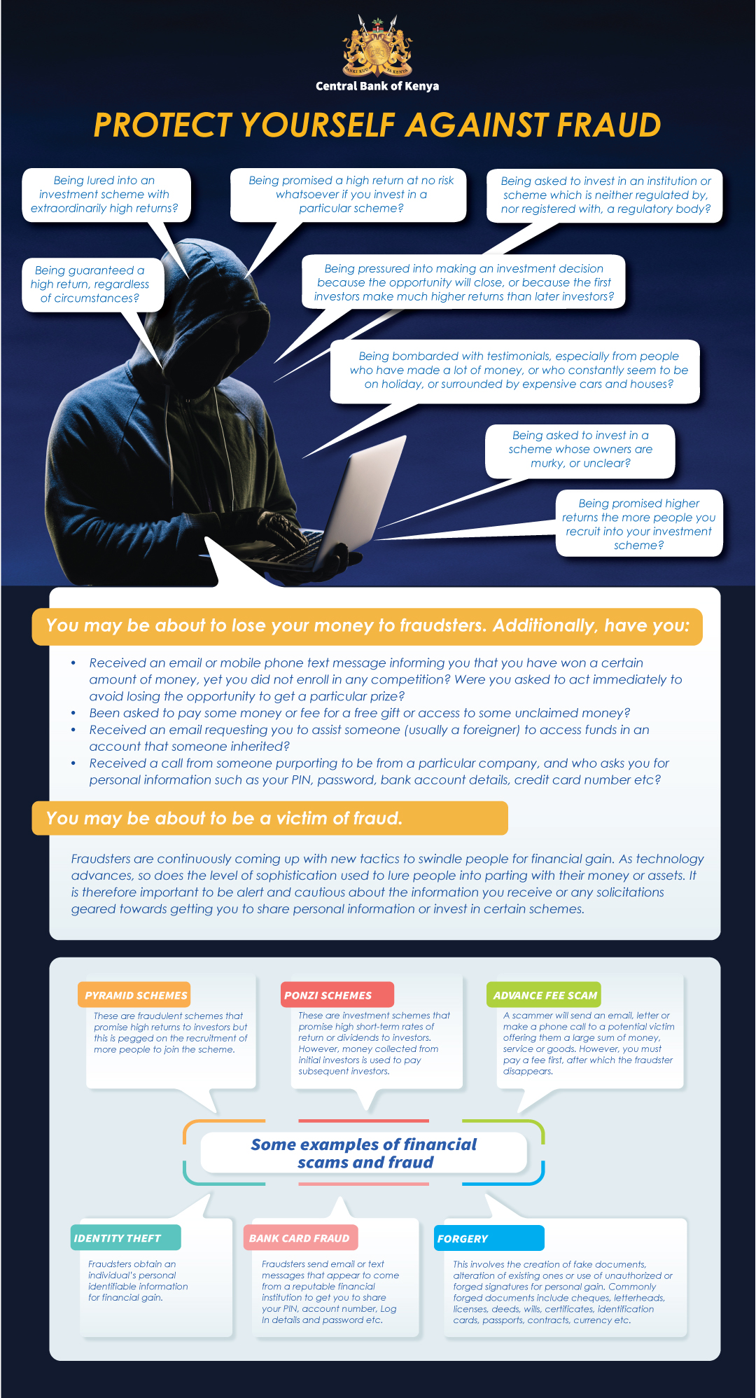 Fraudsters are continuously coming up with new tactics to swindle people for financial gain. As technology advances, so does the level of sophistication used to lure people into parting with their money or assets. It is therefore important to be alert and cautious about the information you receive or any solicitations geared towards getting you to share personal information or invest in certain schemes.